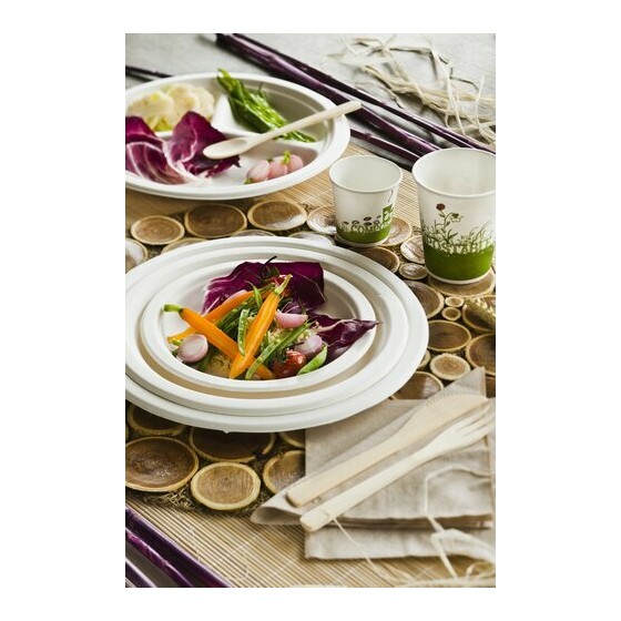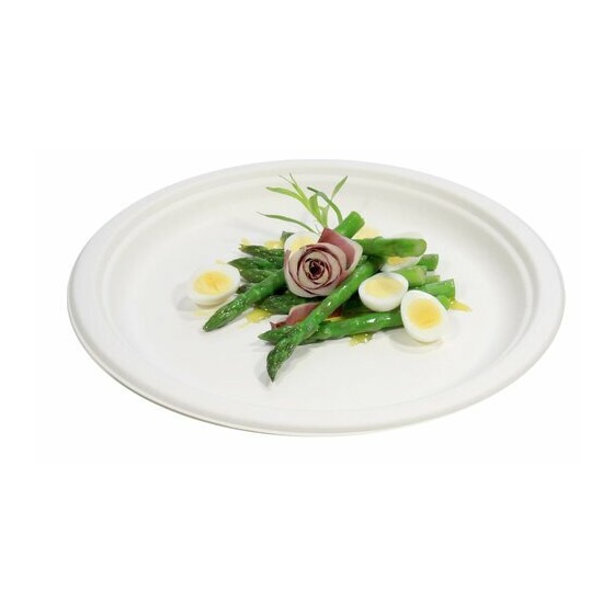 L'assiette ronde en bagasse ø 26 cm est conçue pour le service de portions généreuses en restauration, traiteur ou vente à emporter. Son grand diamètre offre un espace suffisant pour présenter plats principaux, garnitures ou compositions complètes avec une présentation soignée. Fabriquée à partir de fibres végétales naturelles, cette assiette est adaptée aussi bien aux buffets, événements, restaurations rapides qu’aux services traiteur.