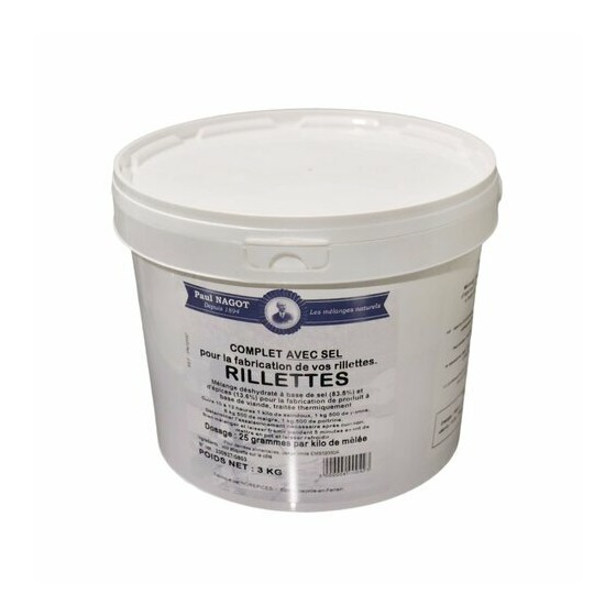 Le complet rillettes est un mélange d'épices et de sel destiné à la fabrication de rillettes. Cet assaisonnement rillettes a été formulé pour accompagner les préparations de viande traitées thermiquement et apporter un profil aromatique typique des recettes charcutières.