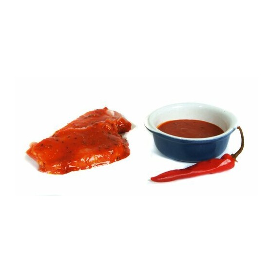 - Composition : eau, épices (piment doux, poivre), dextrose, sel, sirop de glucose, ail, oignon, acidifiant E330, exhausteur de goût E621, conservateur E260, épaississant E415, arôme