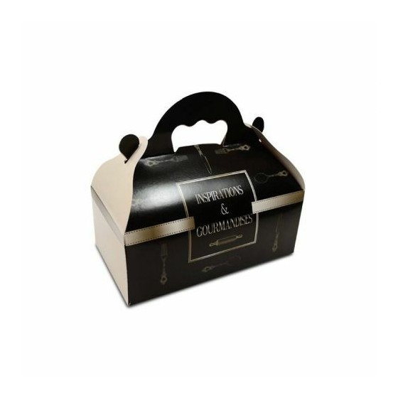 Avantages de notre boîte pâtissière avec poignée 12 x 10 x 7 cm décor inspiration