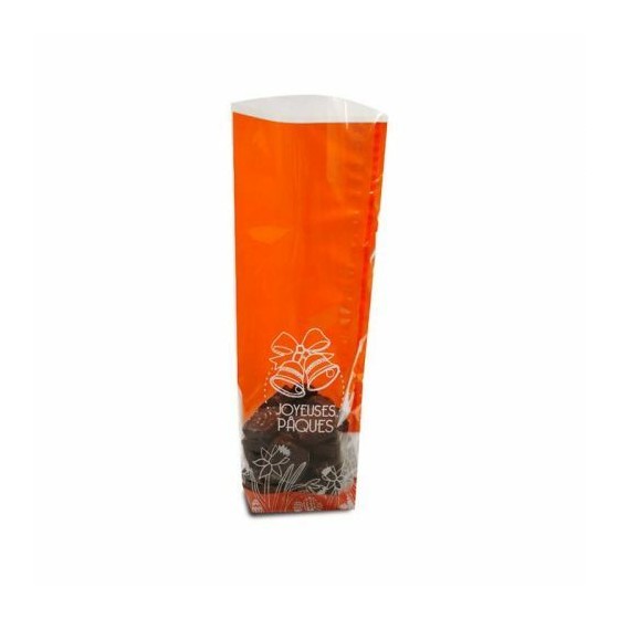 Avantages de notre sachet confiseur fond carton joyeuses paques orange