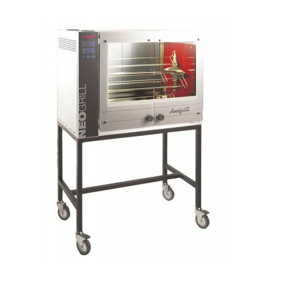 Équipé de 4 roullettes dont 2 avec freins pour des déplacements sécurisés. Ainsi il est aisé de sortir votre rôtissoire en dehors de votre boutique tout comme de la rentrer une fois le service terminé.