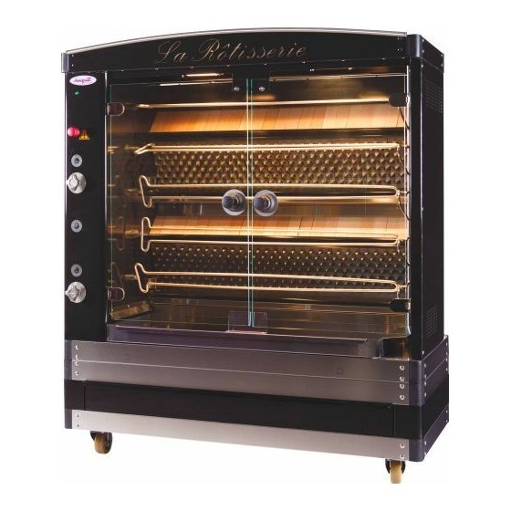 Cuisson par fontes rayonnantes et émetteurs de flamme vives à haut rendement. Arrêt d'urgence "coup de poing", poignées de portes vitrées isolées de la chaleur par rondelle carbone, charnières asservies d'un système de blocage "vitres ouvertes". Facilité de nettoyage. Esthétique. Économique grâce au système de régulation. Rôtisseurs spécialisés, GMS ou saisonniers.