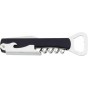 Grand sommelier acier nickelé, manche ABS noir. Comprenant 4 pièces: canif, tire-bouchons , levier décapsuleur et clé à double sens.