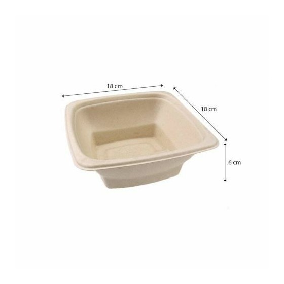 Saladier biodégradable carré , fabriqué à base de bagasse (résidu de canne à sucre).