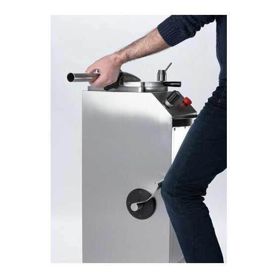 Le couvercle inox à double serrage et joint torique empêche toute fuite de chair durant l’embossage. Le piston démontable, également équipé d’un joint torique, garantit une parfaite étanchéité. La machine peut être déplacée facilement et lavée à grande eau après démontage.